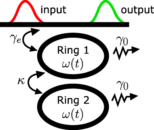 Theory of high-efficiency adiabatic frequency conversion in coupled microrings